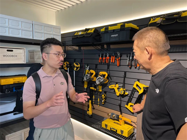 浙江友邦集成吊頂股份有限公司董事長時沈祥帶領(lǐng)大家參觀考察企業(yè)展廳,實地了解應(yīng)用于客廳、廚房、車庫、陽臺等不同場景下的掛掛墻產(chǎn)品。友邦專注技術(shù)創(chuàng)新和新品開發(fā),其MSO模塊化技術(shù)便于消費者根據(jù)自身需求作個性化組裝。