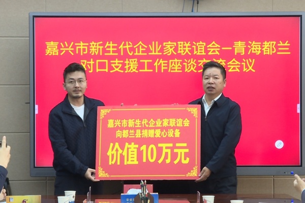 在對(duì)口支援工作座談會(huì)上,考察團(tuán)詳細(xì)了解了都蘭縣的經(jīng)濟(jì)社會(huì)發(fā)展情況和對(duì)口支援工作情況,雙方圍繞對(duì)口支援、產(chǎn)業(yè)發(fā)展、教育醫(yī)療等開展了交流討論。新生代企業(yè)家代表莊耀中和董天瓊分享了考察感受,表示將在企業(yè)發(fā)展中,將“風(fēng)沙大格局更大、海拔高境界更高、環(huán)境苦更能吃苦”的援青精神與企業(yè)文化相結(jié)合,推動(dòng)企業(yè)高質(zhì)量發(fā)展,同時(shí)結(jié)合企業(yè)實(shí)際,對(duì)下一步支持對(duì)口支援工作提出了建議。現(xiàn)場(chǎng)舉行了對(duì)口支援捐贈(zèng)儀式,嘉興市新生代企業(yè)家聯(lián)誼會(huì)向都蘭縣捐贈(zèng)愛(ài)心設(shè)備價(jià)值10萬(wàn)元。