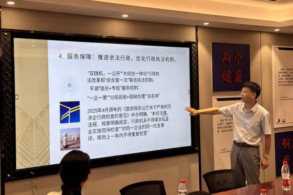 市政協(xié)無(wú)黨派界別委員、浙江六和(嘉興)律師事務(wù)所管委會(huì)副主任吳濤從出臺(tái)背景、主要內(nèi)容和立法價(jià)值三個(gè)維度對(duì)《民營(yíng)經(jīng)濟(jì)促進(jìn)法》進(jìn)行了全面解讀,讓與會(huì)人員充分理解了法律內(nèi)涵與意義,為后續(xù)交流奠定了堅(jiān)實(shí)的基礎(chǔ)。市發(fā)展改革委副主任張標(biāo)、市綜合行政執(zhí)法局副局長(zhǎng)王少順、市司法局(市行政復(fù)議局)法治調(diào)研處處長(zhǎng)朱穎玉,圍繞嘉興市民營(yíng)經(jīng)濟(jì)政策、涉企執(zhí)法檢查等內(nèi)容,先后介紹了我市相關(guān)職能部門對(duì)《民營(yíng)經(jīng)濟(jì)促進(jìn)法》的宣傳貫徹情況,以及部門聯(lián)動(dòng)、多措并舉推動(dòng)《民營(yíng)經(jīng)濟(jì)促進(jìn)法》廣泛實(shí)施的有效舉措。